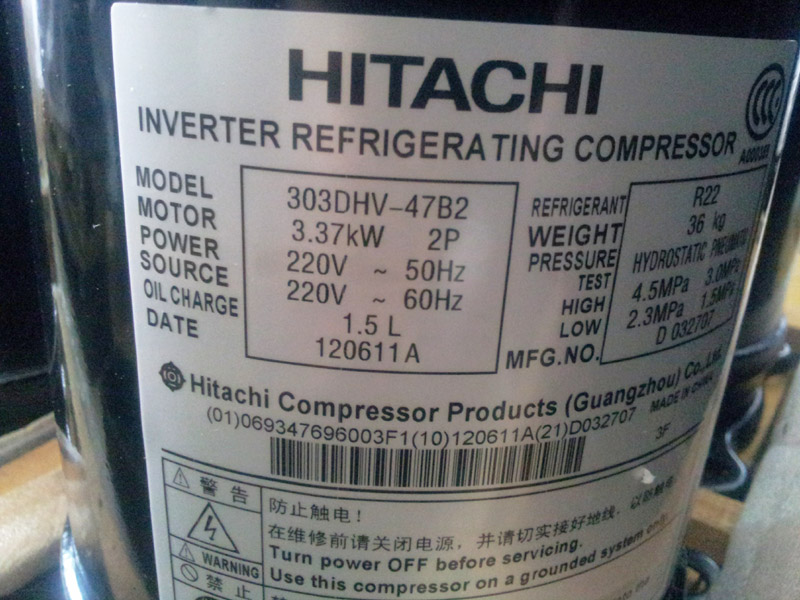 303DHV-47B2 日立交流变频压缩机匀经严格检测,拒绝次品,请各位亲们放心。