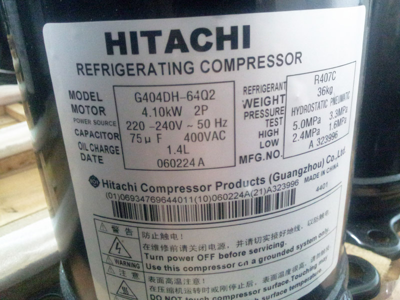 期待各位同仁致电咨询,我们将为您提供热情周到的服务、保证全新原装日立压缩机,可以提供合格证明,代理证明。