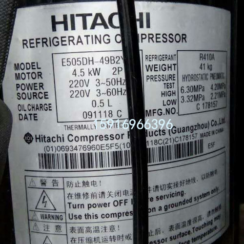 E505DH-49B2YG 江森广州日立压缩机 HITACHI 参数:B电源(三相220V 50-60HZ)
