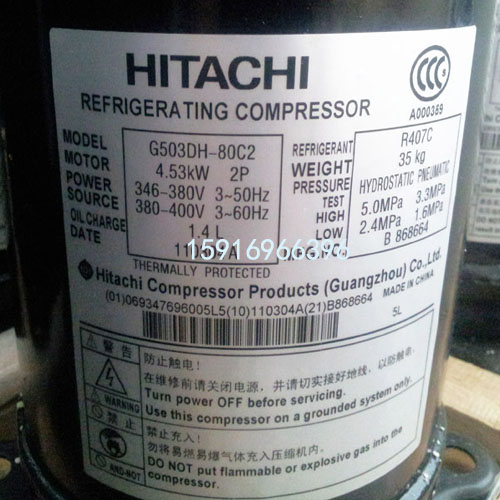 G503DH-80C2 江森日立定频压缩机 HITACHI 期待各位同仁致电咨询,我们将为您提供热情周到的服务、保证全新原装日立压缩机,可以提供合格证明,代理证明。