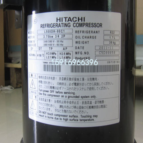 L500DH-90C1 日立冷藏压缩机 HITACHI 期待各位同仁致电咨询,我们将为您提供热情周到的服务、保证全新原装日立压缩机,可以提供合格证明,代理证明。